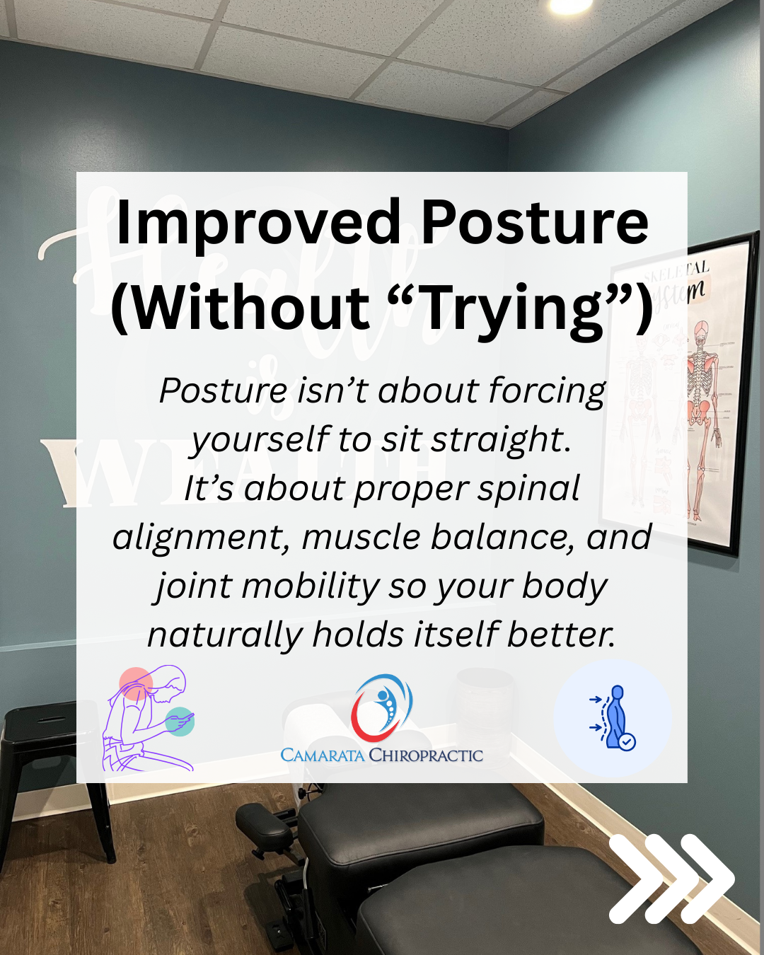 Poor spinal alignment, muscular imbalances, and restricted joints can force the body into compensatory postures. Chiropractic care helps correct these imbalances so your body naturally holds itself in a healthier position, reducing strain on muscles and joints.