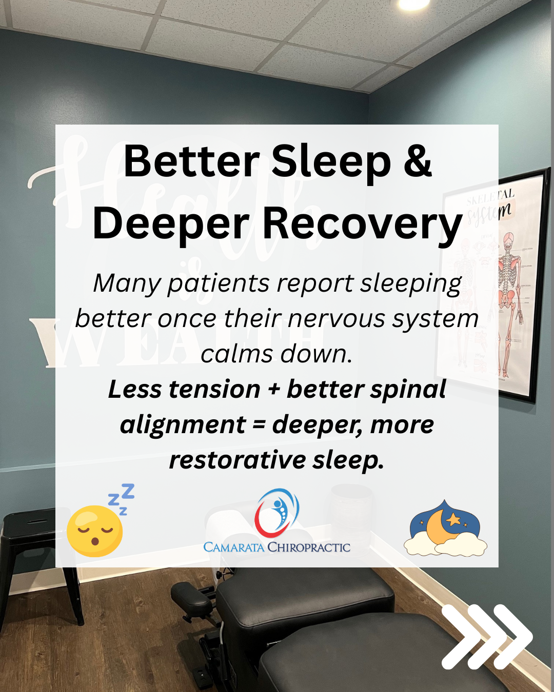 Why? Because spinal alignment and nervous system regulation play a key role in shifting the body out of fight-or-flight mode and into rest-and-recovery mode. Less tension, improved mobility, and better nervous system balance all support deeper, more restorative sleep.