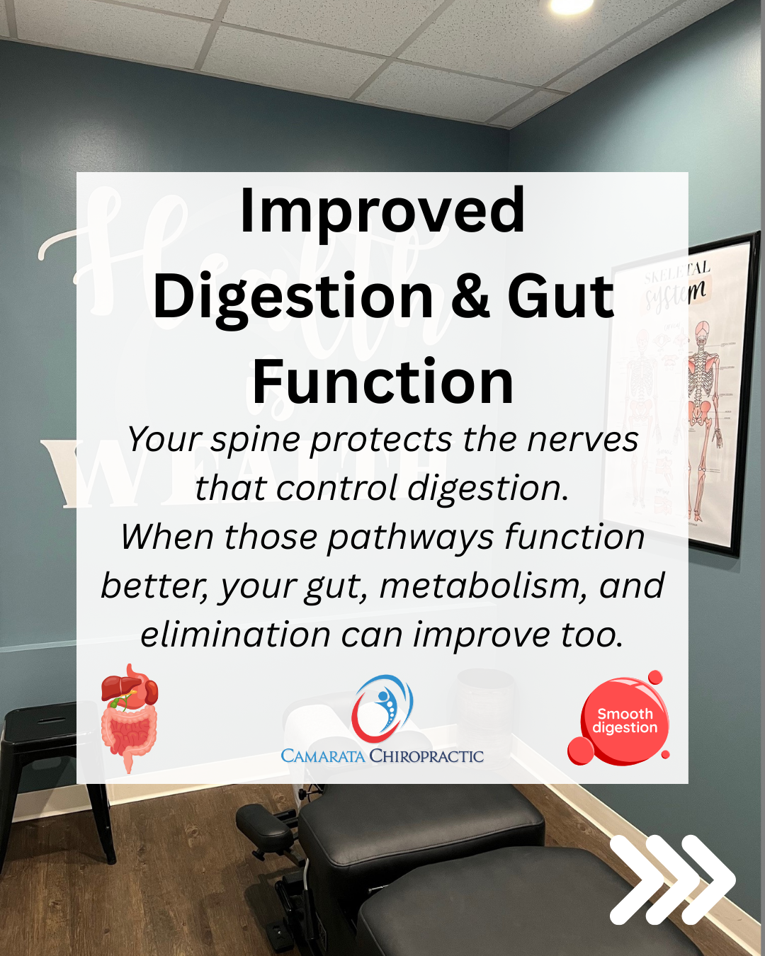 Chiropractic care supports optimal nerve signaling to the digestive system, helping improve gut motility, nutrient absorption, and overall digestive efficiency—especially when combined with proper nutrition and lifestyle guidance.